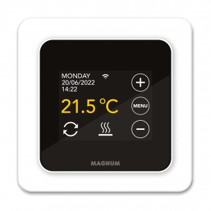 A MAGNUM orgulhosamente apresenta o novo cronotermostato MAGNUM Controle X-treme! Elegante, colorido e requintado relógio digital termostato foi especialmente concebido para os sistemas de aquecimento eléctrico. O Cronotermostato MXC pode ser aplicado com qualquer solução de Piso radiante eléctrico (Mat, Cable ou Microfoil), é fornecido com uma sonda externa de pavimento, um sensor de temperatura ambiente e traz de série 3 diferentes “espelhos” que se adaptam à esmagadora maoria das aparelhagens eléctricas presentes no mercado. O MAGNUM X-treme Control é simples e intuitivo para operar por meio de botões sensíveis ao toque no display. Inclui linguagem em Português.